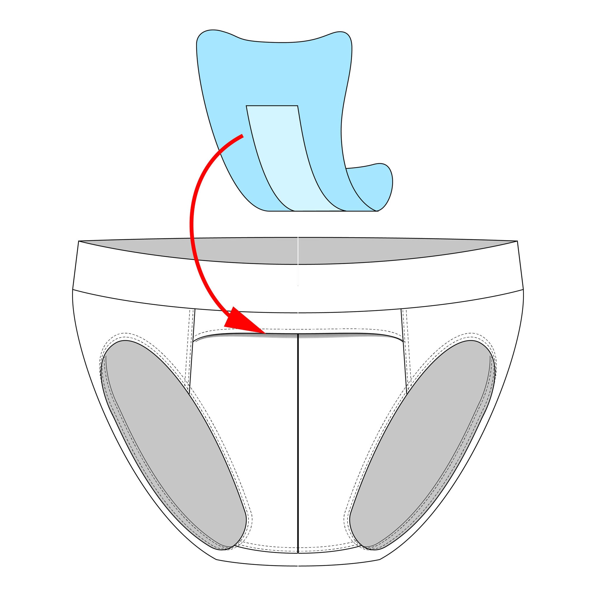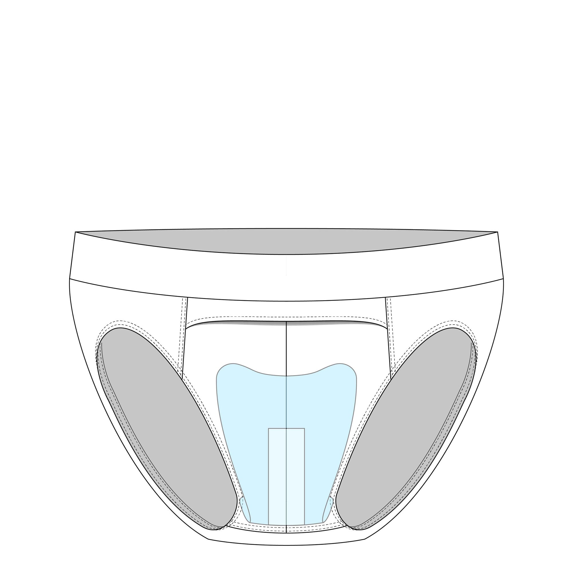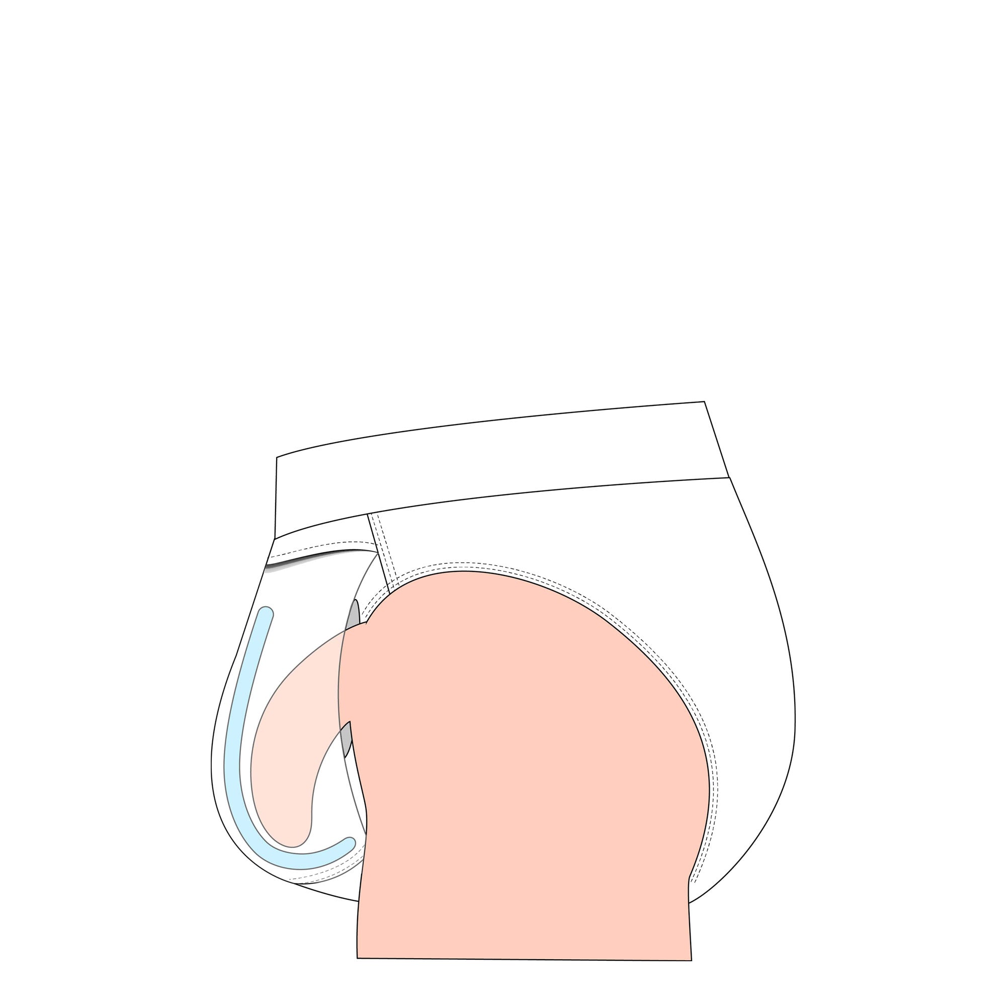 Die als Slip und als Boxershorts erhältliche Unterhose von THE VISIONBROS ist vorne mit einem patentierten Zwei-Kammer-System ausgestattet. Diese zweite Kammer ist mit einer wasserundurchlässigen und atmungsaktiven Beschichtung (Membran) ausgestattet. Sie ziehen die Unterhose an, legen die individuelle benötigte Einlage (ohne den Klebestreifen abzuziehen) vorne ein und führen dann ihren Penis durch die Öffnung in diese zweite Kammer. Ihr Skrotum kommt so nicht mit der (feuchten) Einlage in Berührung. Feuchtigkeit wird vermehrt vom Körper ferngehalten. Das System ist kompatibel mit den meisten leichten bis mittleren Einlagen. Die Unterhose ist aus atmungsaktiver 95% Baumwolle mit 5% Elasthan(und waschbar bis 40 Grad).